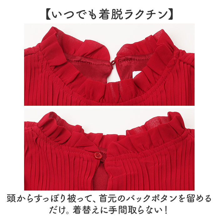 ・頭からすっぽり被って、首元のバックボタンを留めるだけ。着替えに手間取らない!