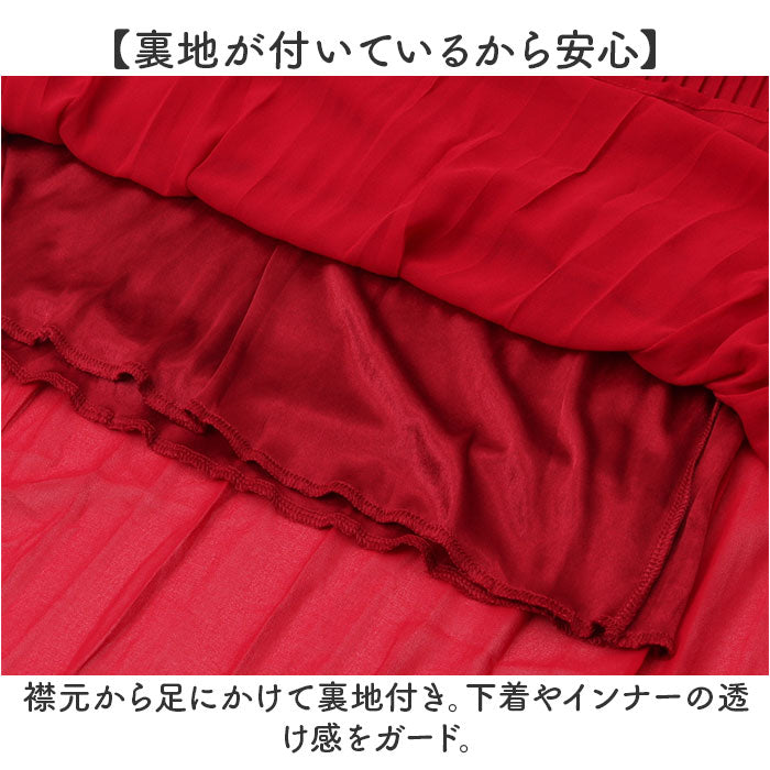 ・襟元から足にかけて裏地付き。下着やインナーの透け感をガード。