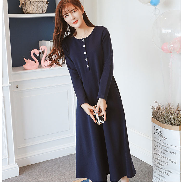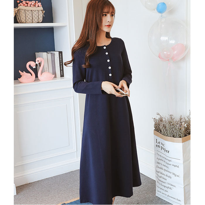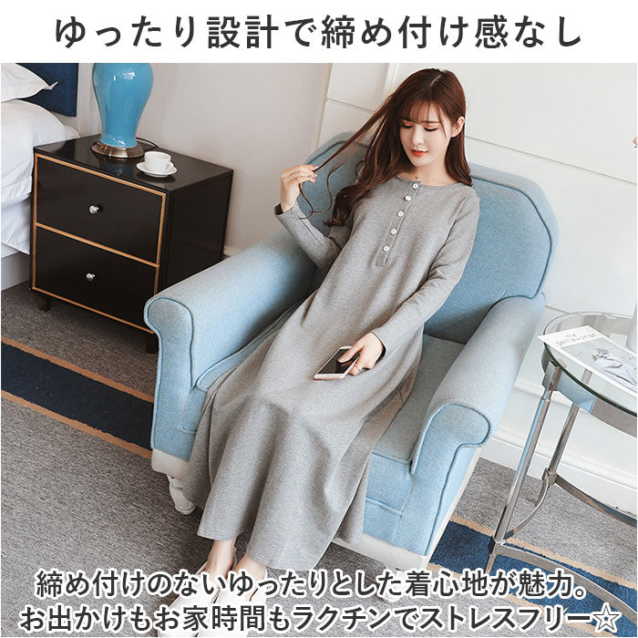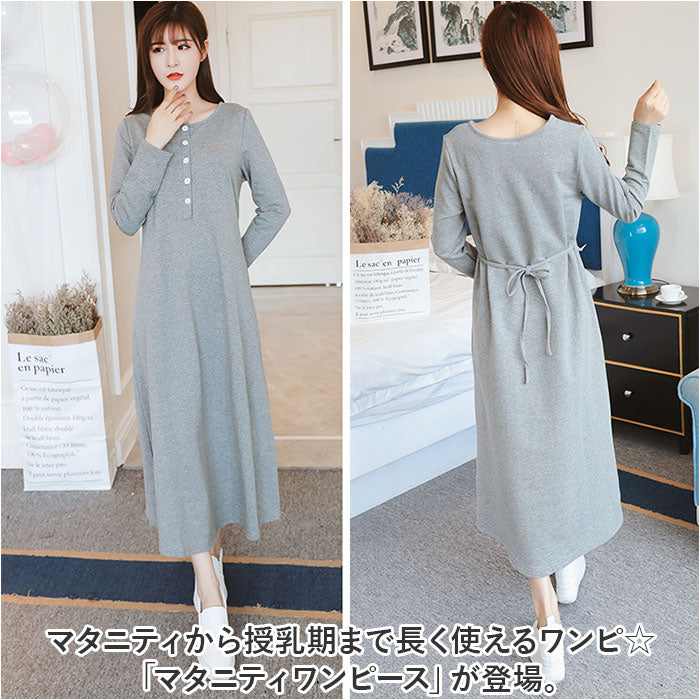 マタニティ ワンピース ロング 通販 マタニティウェア 授乳服 妊婦服 ウエア 長袖 ワンピ 前ボタン 前開き ウエストリボン 綿 コットン シンプル 無地 通勤 オフィス フォーマル 産前