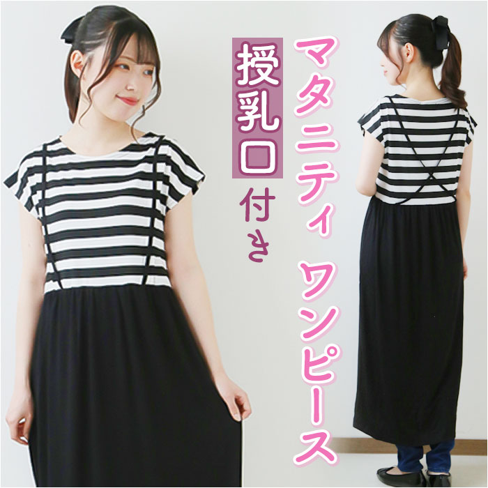 マタニティ ワンピース 半袖 通販 授乳服 ロングワンピース ルームウェア 部屋着 ロング マキシ 授乳 授乳口 ロング丈 体型カバー ファスナー ジッパー 前開き 産前 産後 春 夏