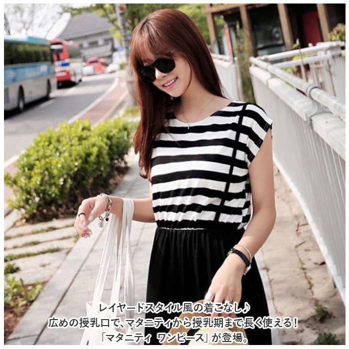 ・レイヤードスタイル風の着こなし♪広めの授乳口で、マタニティから授乳期まで長く使える!「マタニティ ワンピース」が登場。