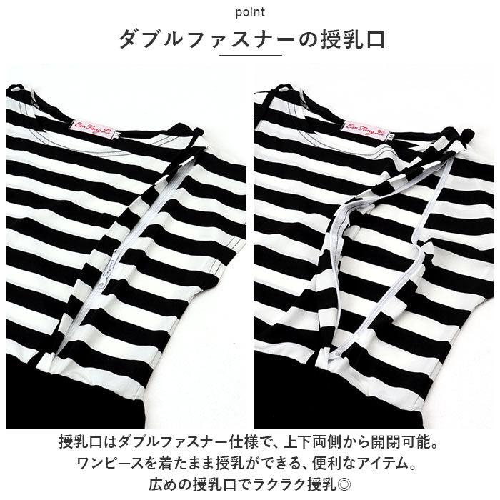 ・ 授乳口はダブルファスナー仕様で、上下両側から開閉可能。ワンピースを着たまま授乳ができる、便利なアイテム。広めの授乳口でラクラク授乳◎