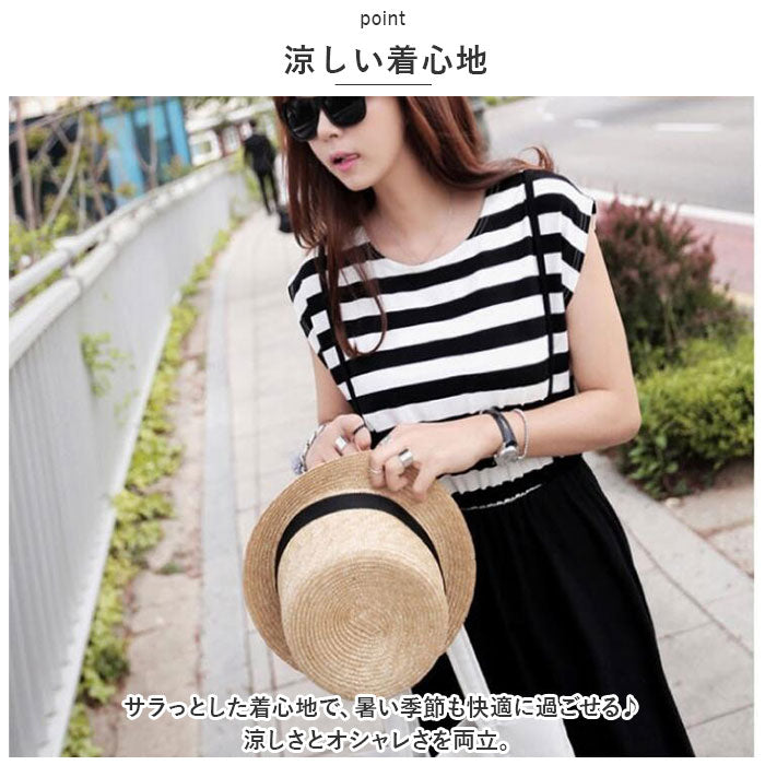 ・クロスデザインの肩紐で、後ろ姿も可愛い☆定番のボーダーデザインで、デイリー使いにぴったりのアイテム。