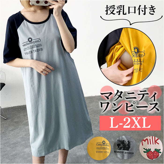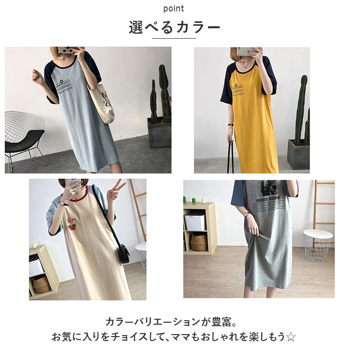 マタニティ tシャツ ワンピース Tシャツ マタニティウェア 通販 ワンピ tシャツワンピース tシャツワンピ ルームウェア パジャマ 授乳服 部屋着 寝間着 寝巻き 授乳口付き 授乳 ロング丈
