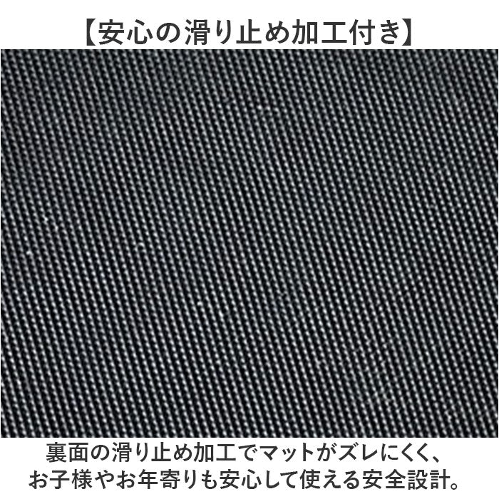 ・裏面の滑り止め加工でマットがズレにくく、お子様やお年寄りも安心して使える安全設計。