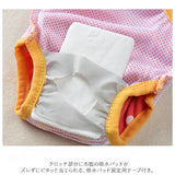 ・クロッチ部分に市販の吸水パッドがズレずにピタッと当てられる、吸水パッド固定用テープ付き。