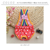 ・可愛らしい水玉模様の生地に、目の覚めるようなレインボーストライプの肩ベルトを合わせたお洋服感覚で着られるマナーウェア。