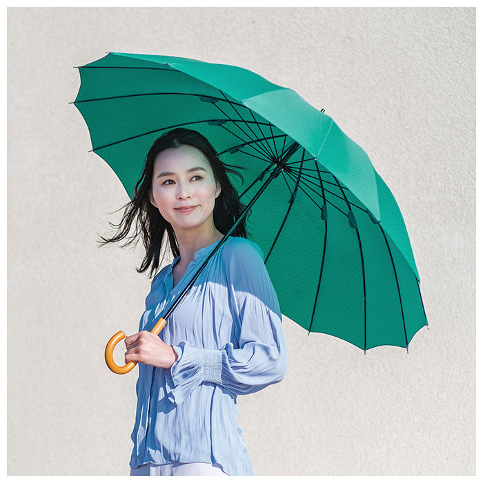 ・多骨ならではの丈夫さや余裕の感じられるサイズ感を、小柄な方でも使いやすいバランスに仕上げた長傘。
