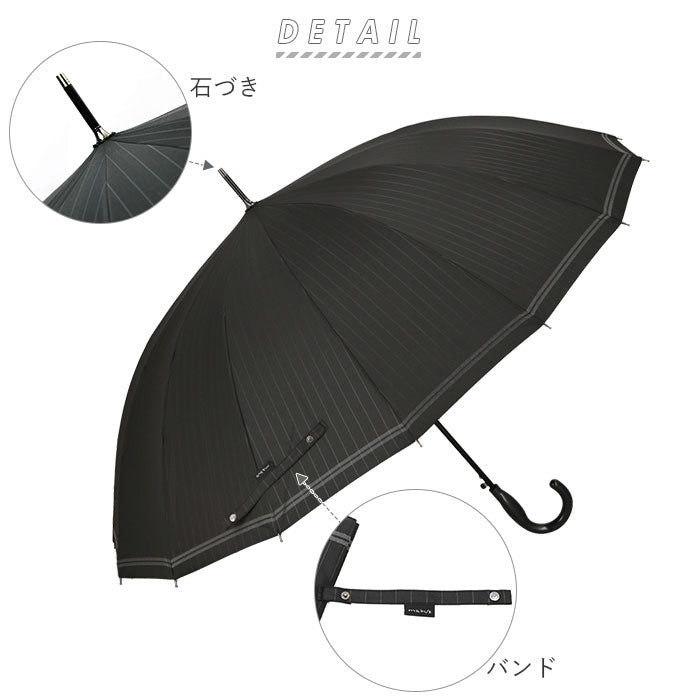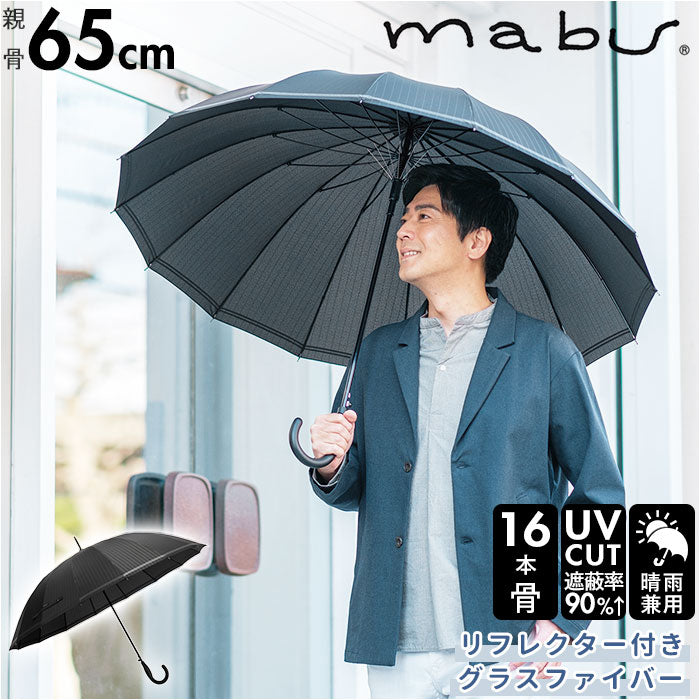 マブ mabu 長傘 メンズ 通販 16本骨 晴雨兼用 雨晴兼用 ジャンプ ワンタッチ UV UVカット 丈夫 リフレクター 65cm 大きい 雨傘 日傘 メンズ傘 グラスファイバー 強風 かさ 多骨