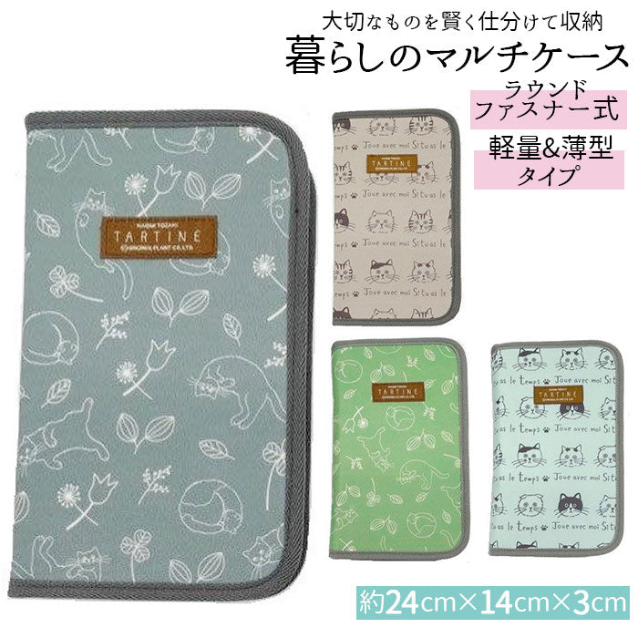 マルチケース おしゃれ 通販 通帳 母子手帳 通帳ケース 母子手帳ケース 縦長 ケース お薬手帳 ポーチ パスポートケース フリーケース カードケース 通帳入れ 家計簿 袋分け 多機能ポーチ 猫雑貨 ネコ柄 小物 猫 ねこ ネコ 雑貨 タルティーヌ