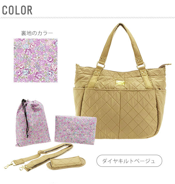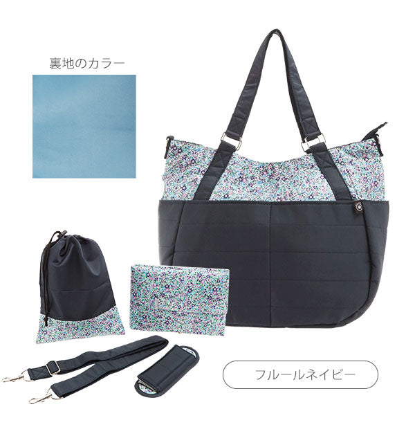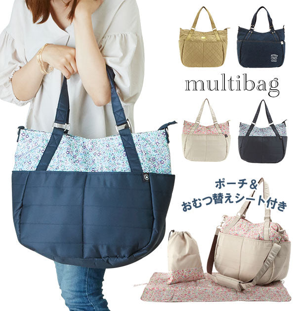 トート型マルチバッグと巾着ポーチ、マルチマットがセットになった便利な3点セット。