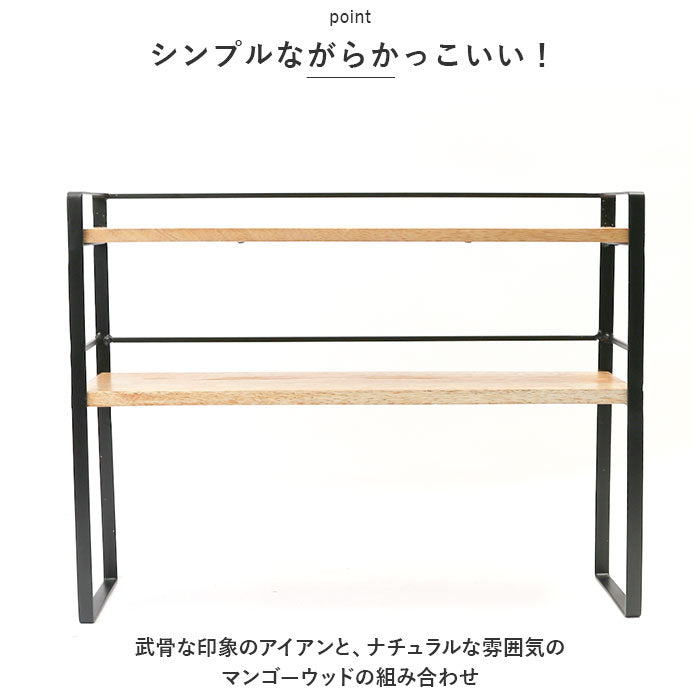 ・武骨な印象のアイアンと、ナチュラルな雰囲気のマンゴーウッドの組み合わせ。