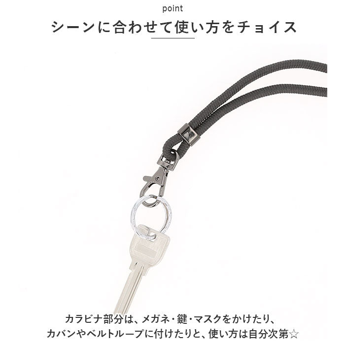 ・カラビナ部分は、メガネ・鍵・マスクをかけたり、カバンやベルトループに付けたりと、使い方は自分次第☆