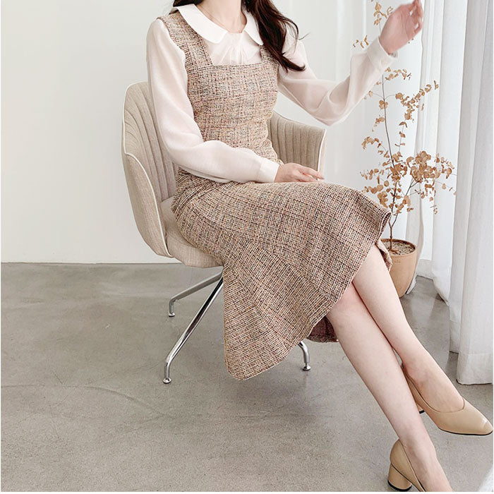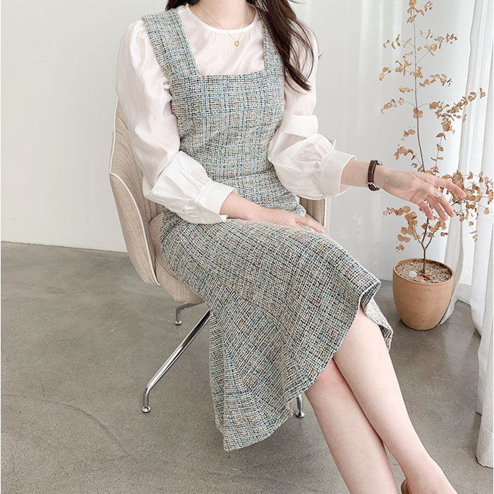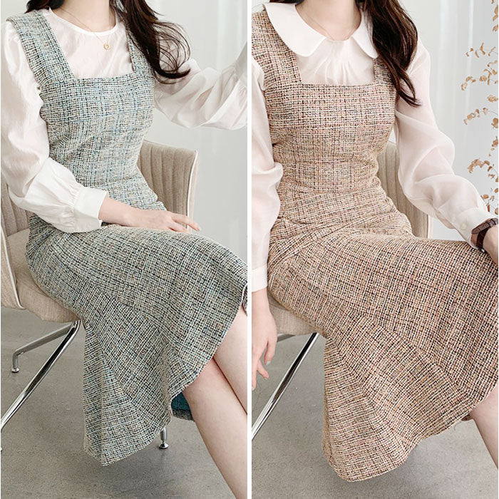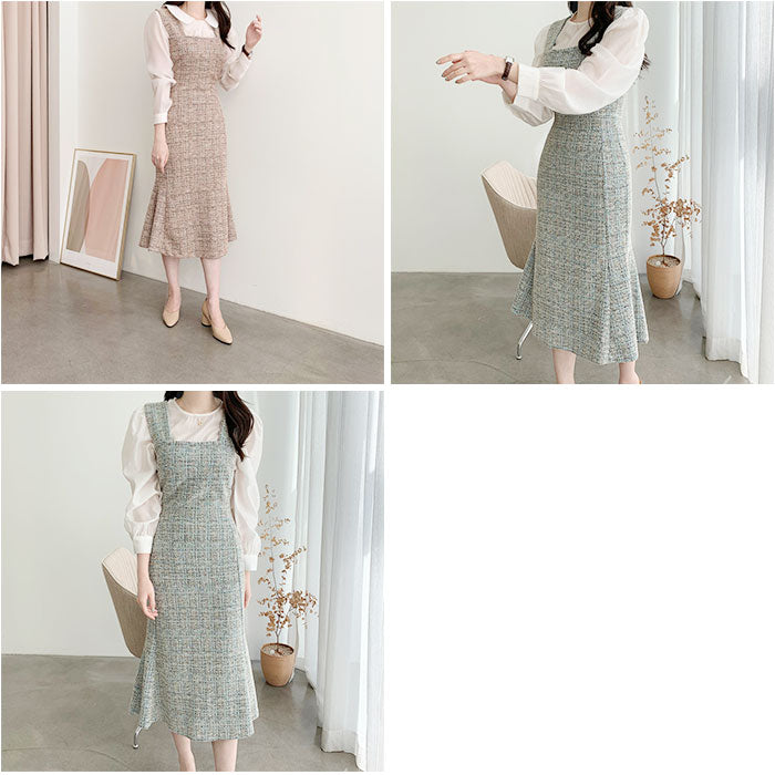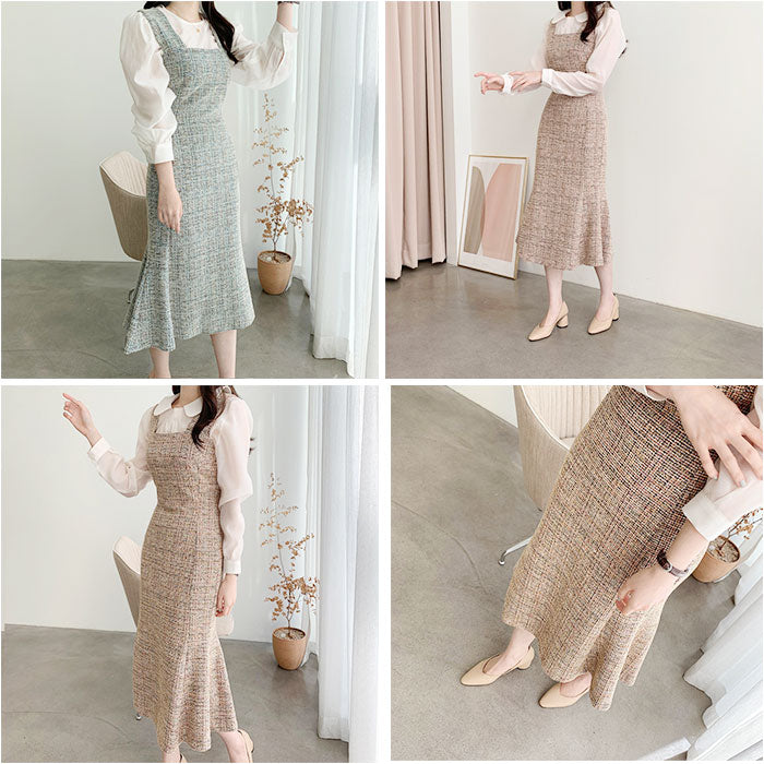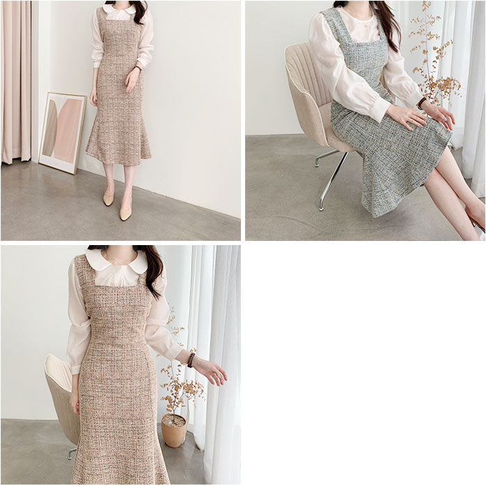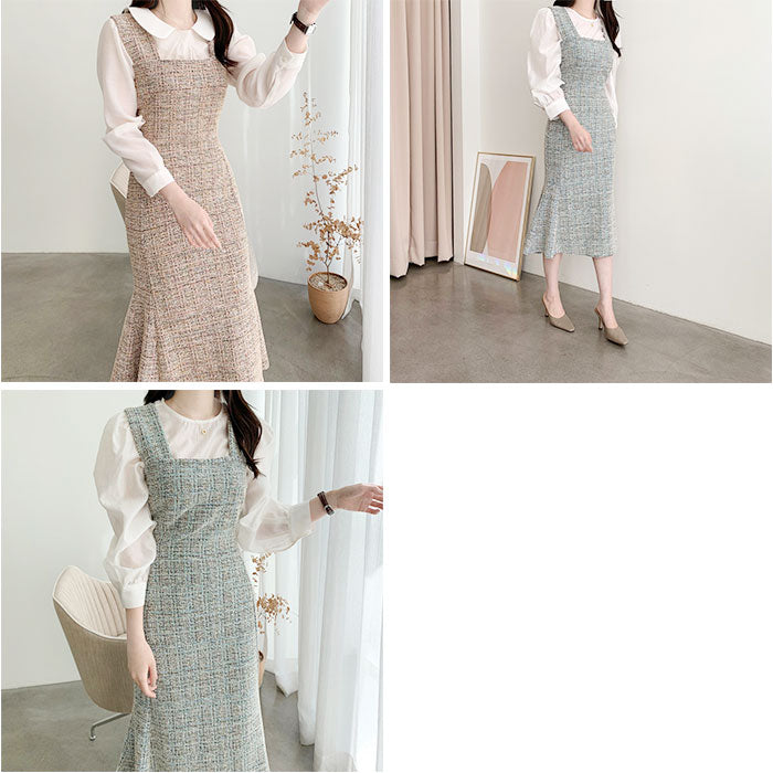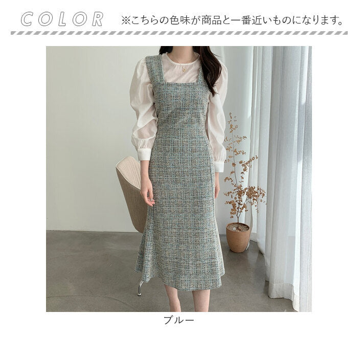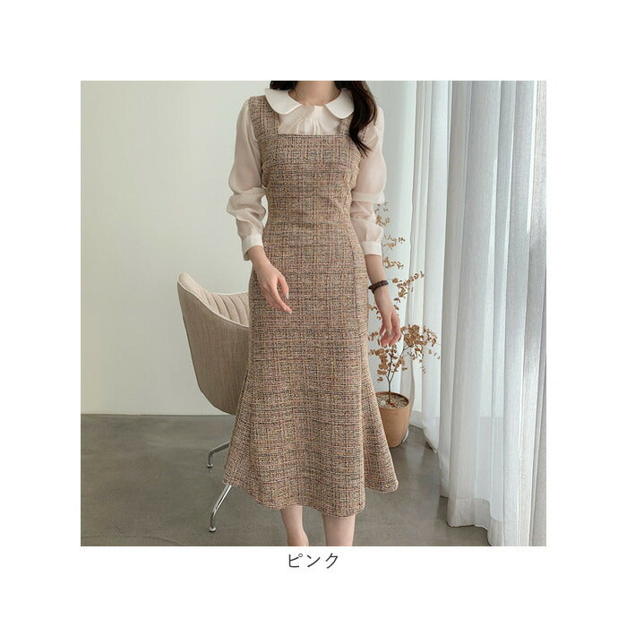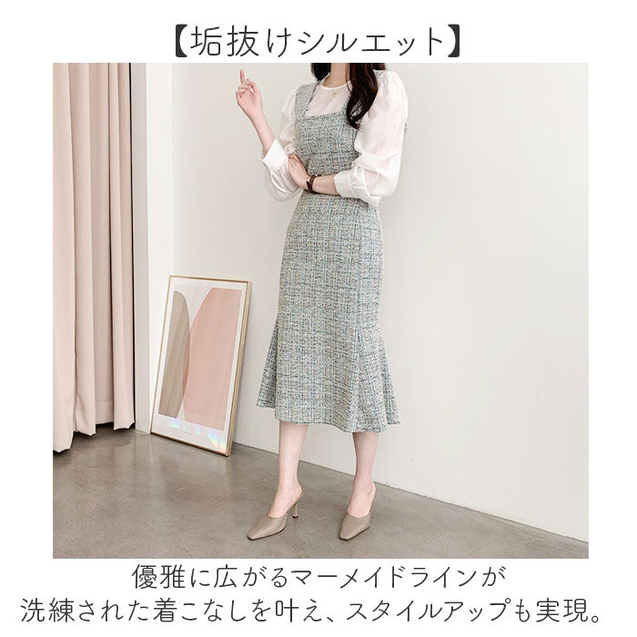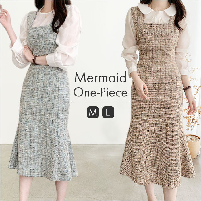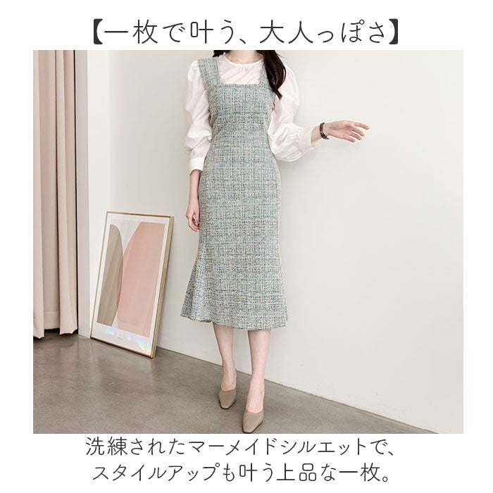 マーメイド ワンピース レディ−ス スクエアネック 通販 ワンピ サロペット スカート ジャンパースカート カジュアル マーメイド裾 秋 冬 きれいめ マーメイドワンピース 重ね着