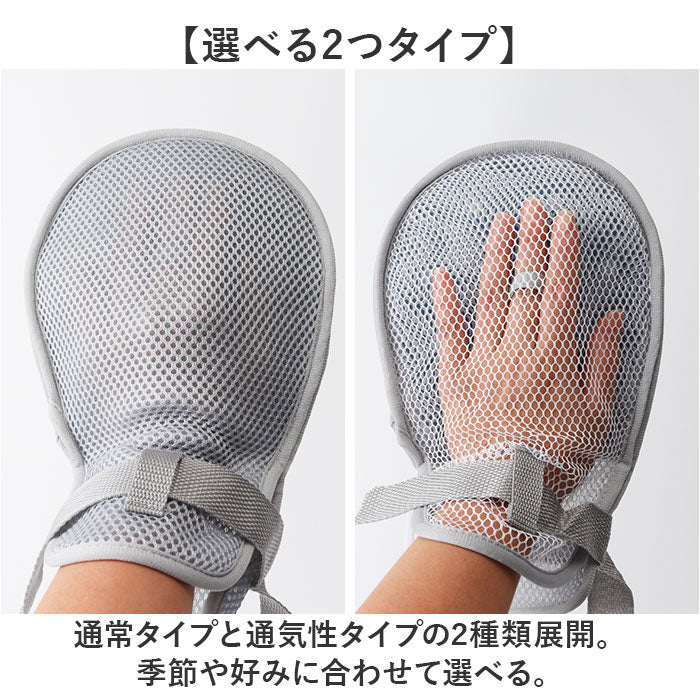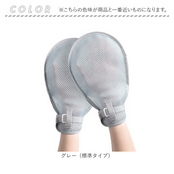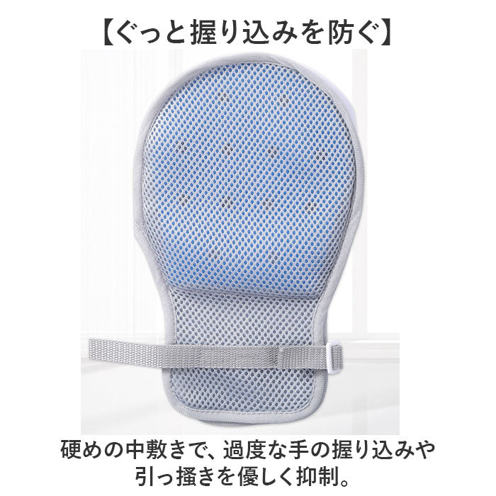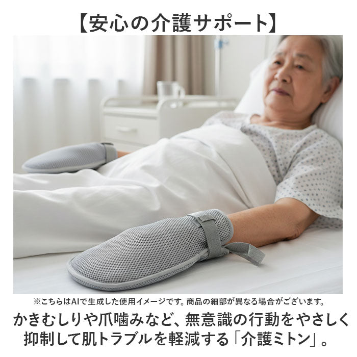 ・かきむしりや爪噛みなど、無意識の行動をやさしく抑制して肌トラブルを軽減する「介護ミトン」。