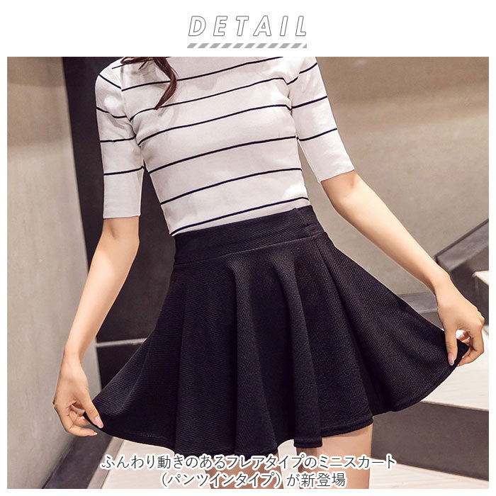 ・ふんわり動きのあるフレアタイプのミニスカート(パンツインタイプ)が新登場。