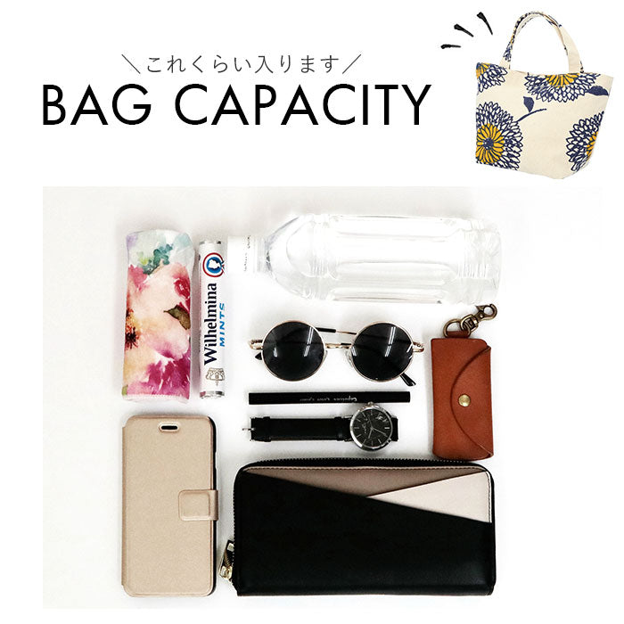 ・マチがしっかりあり、本体と同柄の取り外し可能な底板付きなので、お弁当箱や荷物を安定した状態で収納可能。