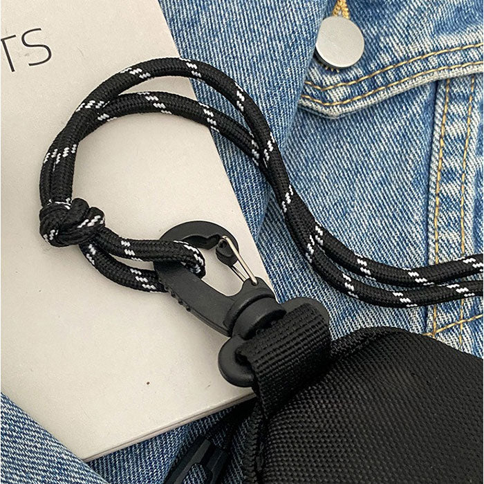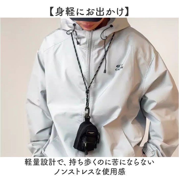 ・カラビナでベルトループやバッグに装着でき、ストラップを使えば斜め掛けもできるマルチなアイテム