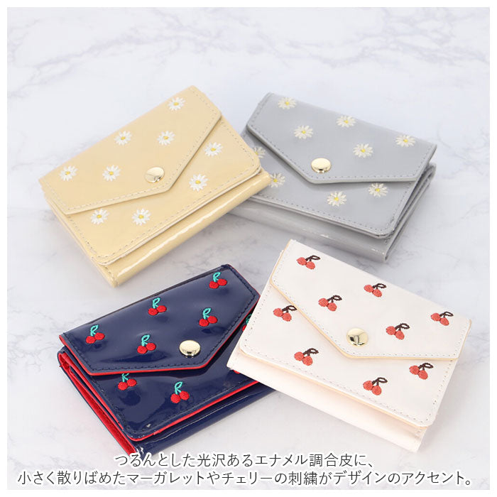 ミニ財布 ミニウォレット 三つ折り 通販 刺繍 小銭入れ 小さい財布 ミニ 財布 ウォレット コンパクト エナメル カード 収納 かわいい レディース おしゃれ 贈り物 ギフト
