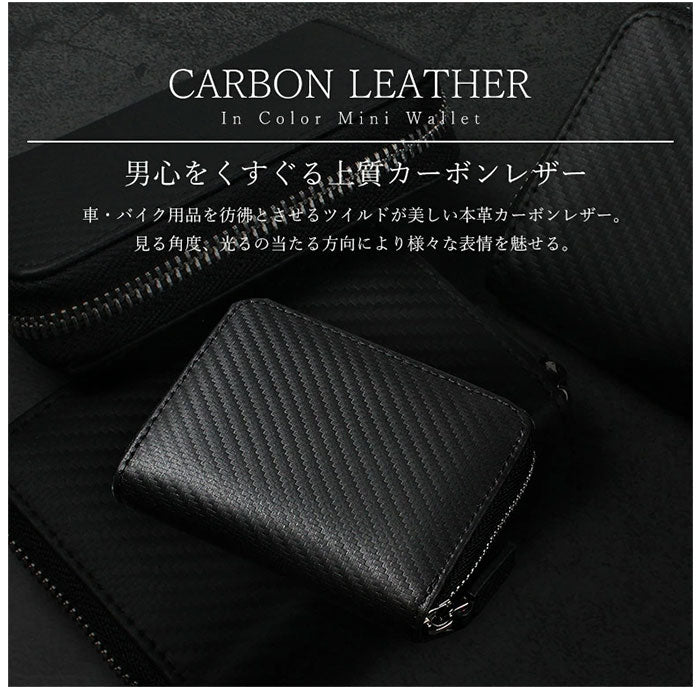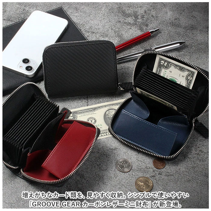 ミニ財布 メンズ 革 通販 GROOVE GEAR 財布 サイフ 小銭入れ カーボンレザー 牛革 ミニウォレット 二つ折り財布 折り財布 コインケース 折財布 カード収納 カードポケット