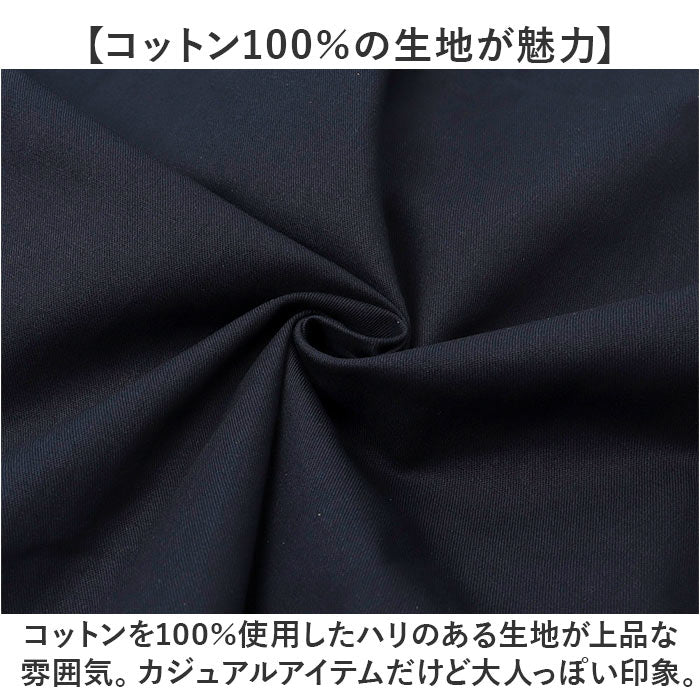 ・コットンを100%使用したハリのある生地が上品な雰囲気。カジュアルアイテムだけど大人っぽい印象。