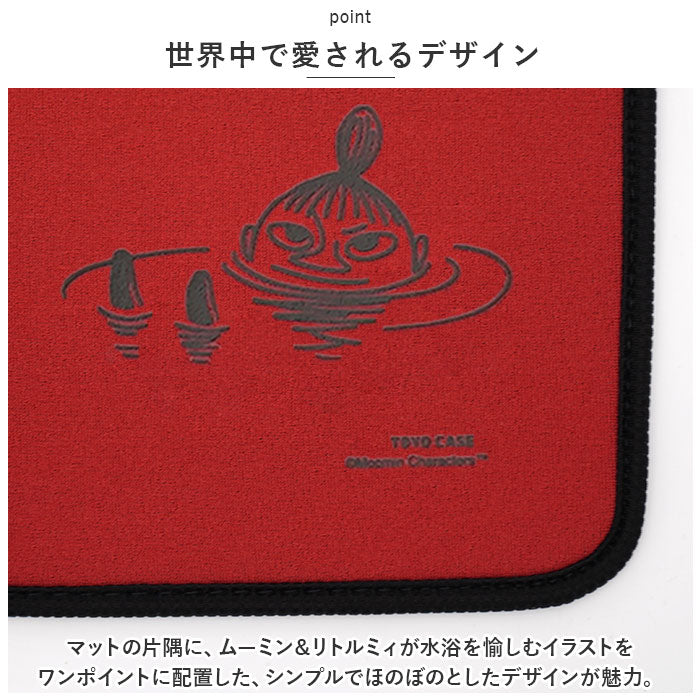 ・マットの片隅に、ムーミン&リトルミィが水浴を愉しむイラストをワンポイントに配置した、シンプルでほのぼのとしたデザインが魅力。