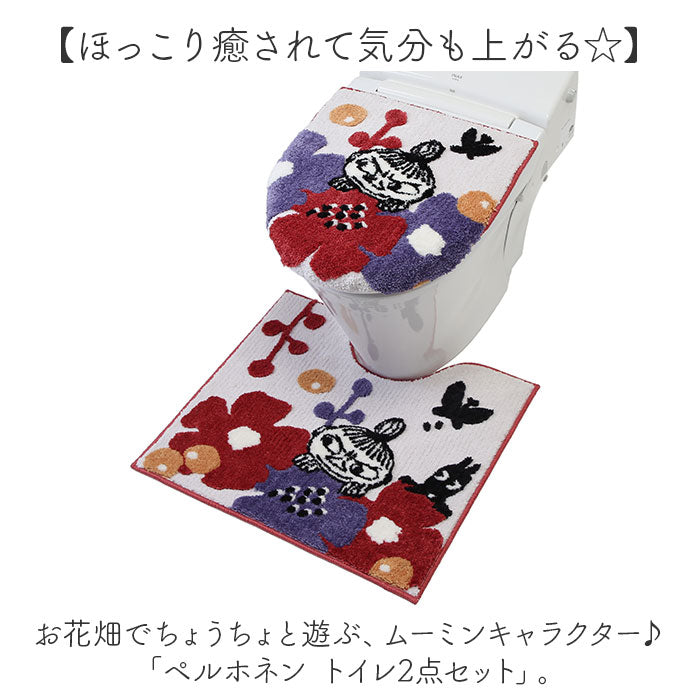 ・お花畑でちょうちょと遊ぶ、ムーミンキャラクター♪「ペルホネン トイレ2点セット」。