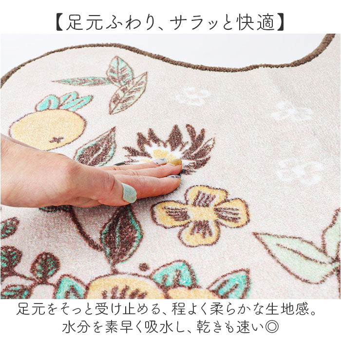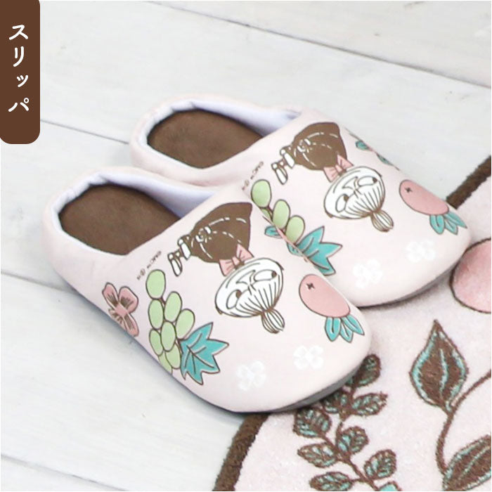 ・マットとフタカバーは、優しい肌触りの生地。スリッパはしっとり心地よい生地に転写プリント♪