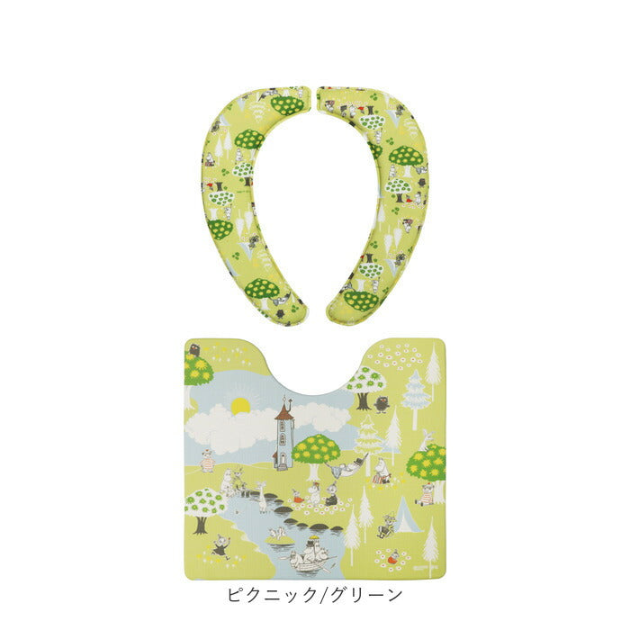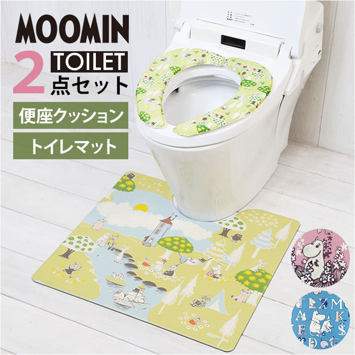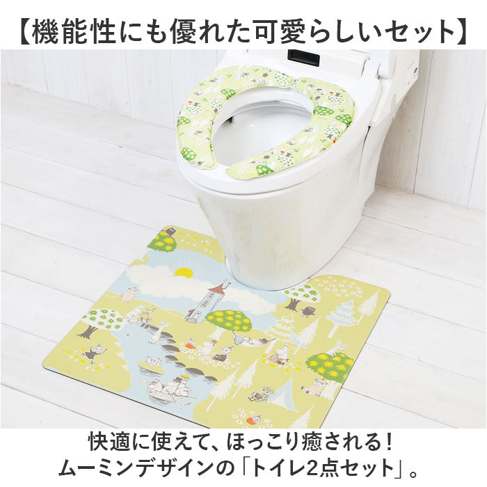 ムーミン トイレ グッズ 通販 トイレカバー セット 2点セット トイレマット 拭ける トイレ足元マット 便座シート 貼るタイプ 吸着シート ふわふわ おしゃれ かわいい 北欧 キャラクター