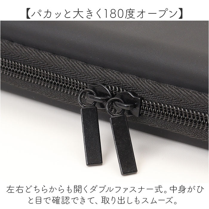 ・左右どちらからも開くダブルファスナー式。中身がひと目で確認できて、取り出しもスムーズ。