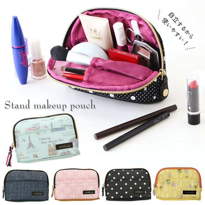 ・しっかり自立して使いやすい!いつものトートにちょこんと入れておけるスリムなコスメスタンドポーチ。