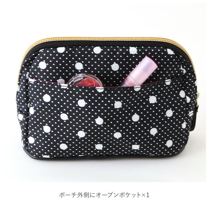 ・ポーチ外側のオープンポケットには、リップクリームやミラーなど使用頻度の高いメイクアイテムを入れておけばサッと取り出せる!