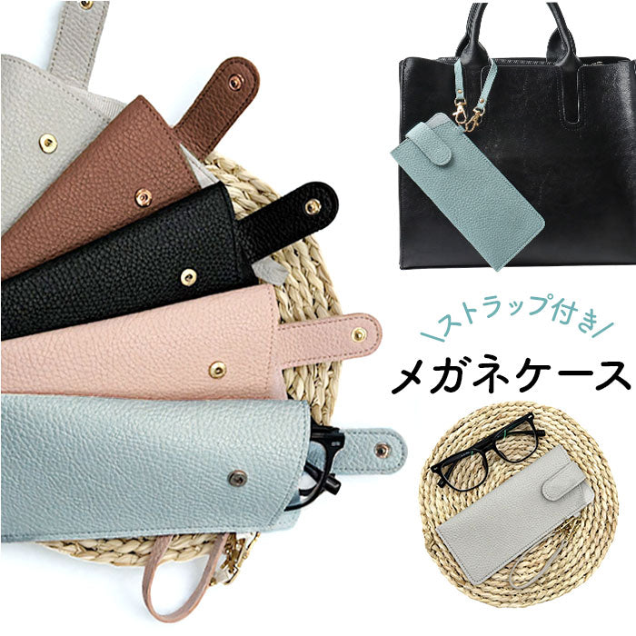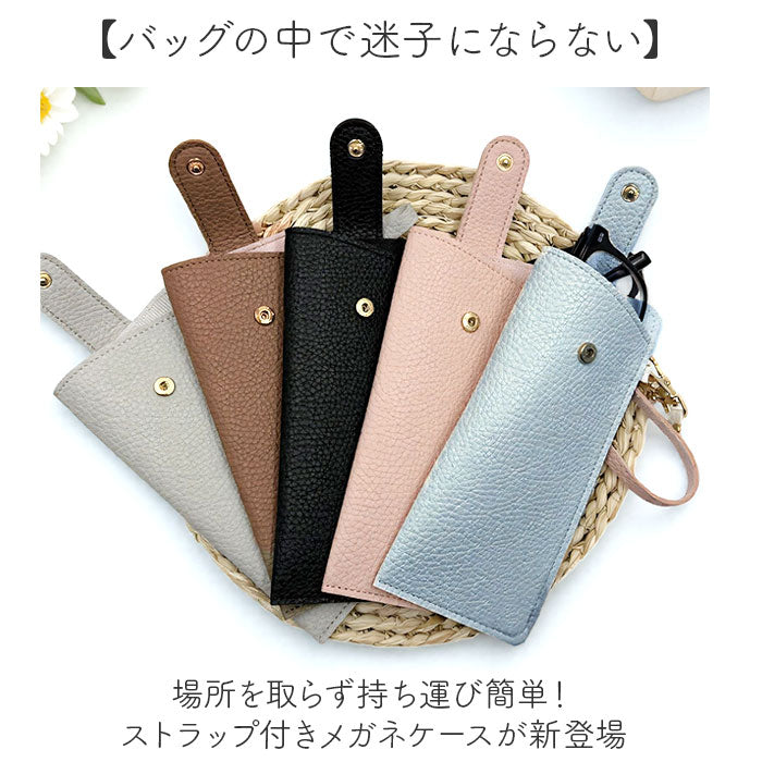 メガネケース ストラップ おしゃれ 通販 眼鏡ケース 薄型 めがねケース スリム ソフトケース サングラスケース 老眼鏡ケース レディース メンズ フェイクレザー シンプル かわいい 携帯