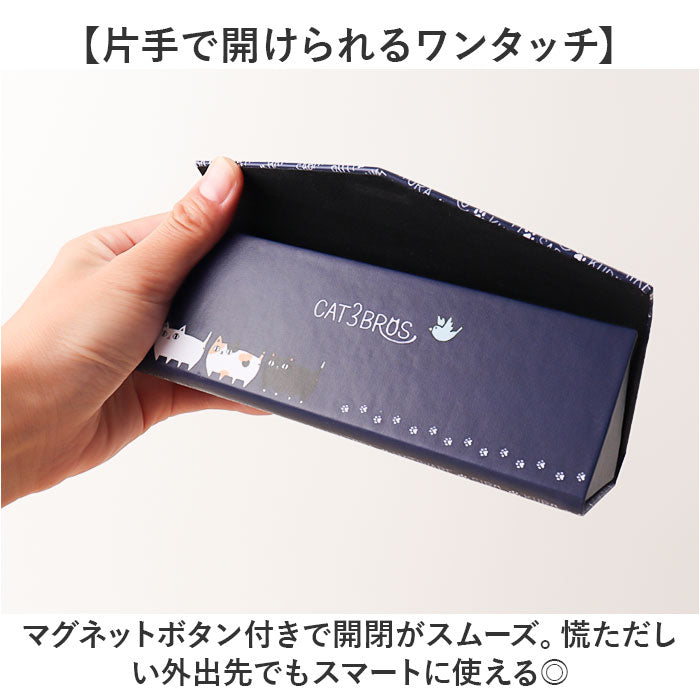 メガネケース 猫 通販 にゃん屋 猫3兄弟 眼鏡ケース 猫三兄弟 めがねケース 折りたたみ コンパクト 持ち運び セミ ハードケース ネコ ねこ レディース 女子 女の子 高校生 ケース