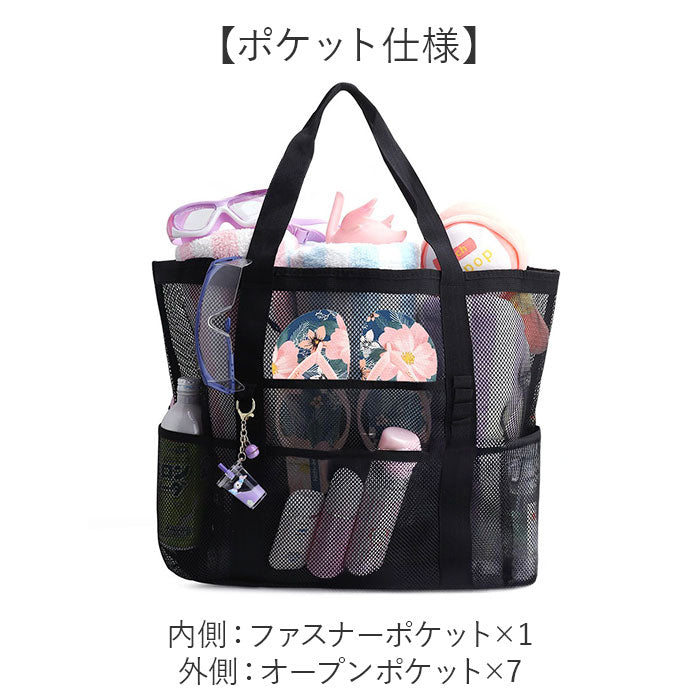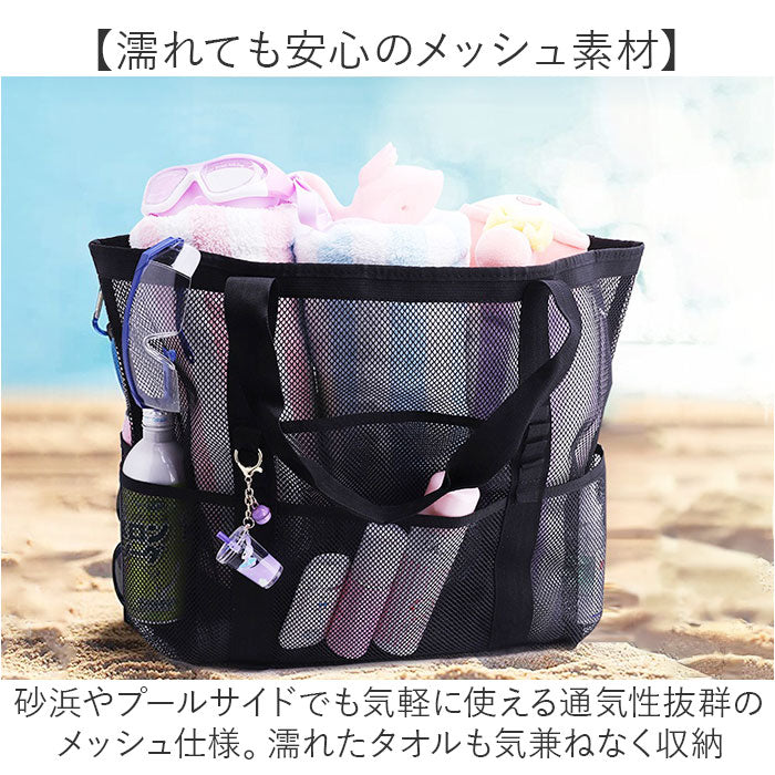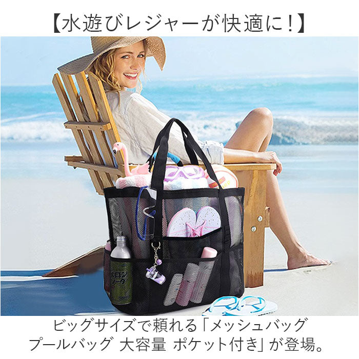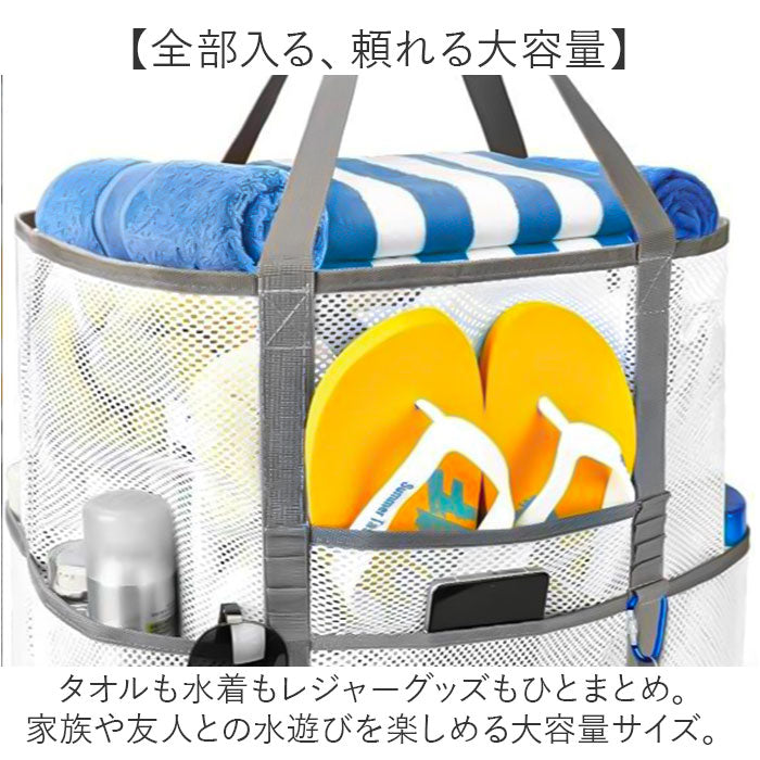 ・ビッグサイズで頼れる「メッシュバッグ プールバッグ 大容量 ポケット付き」が登場。