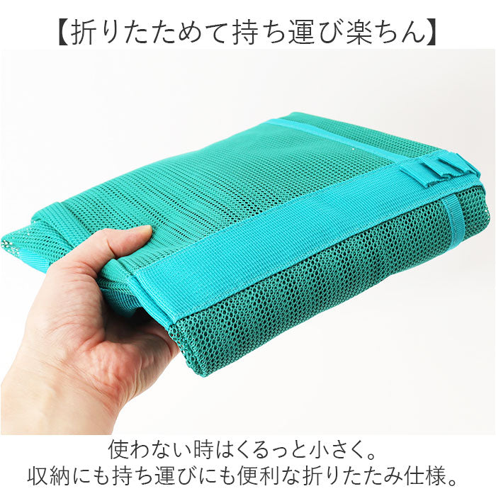 ・砂浜やプールサイドでも気軽に使える通気性抜群のメッシュ仕様。濡れたタオルも気兼ねなく収納