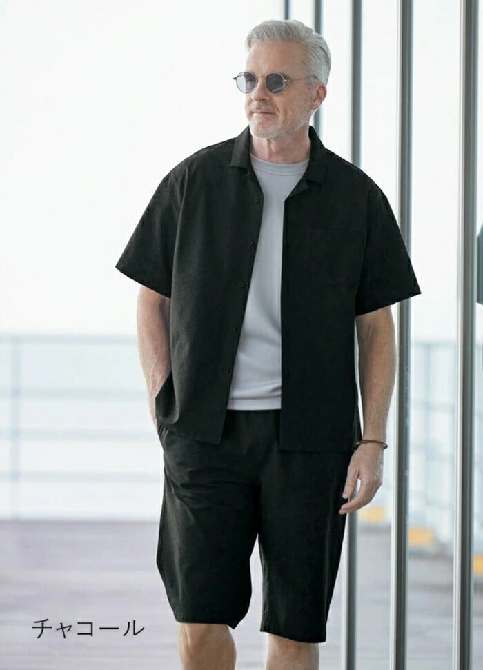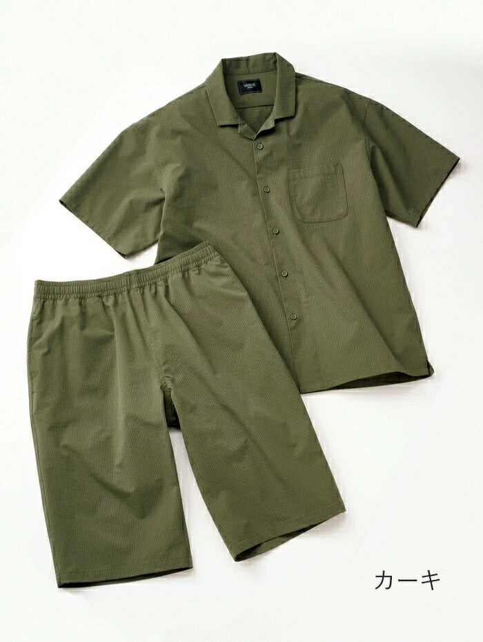 ・ラフに着られてしかもお洒落な涼感開襟シャツ&ショーツのセット。