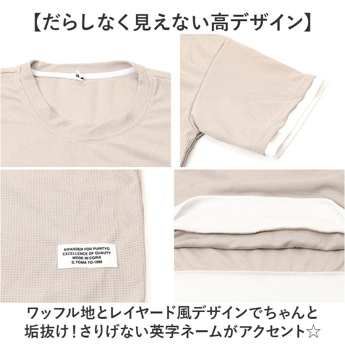 ・ワッフル地とレイヤード風デザインでちゃんと垢抜け!さりげない英字ネームがアクセント☆