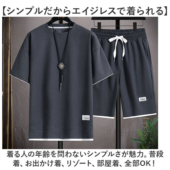 ・こなれ感のあるコーデがキマる! メンズセットアップ 半袖ハーフパンツ が登場。