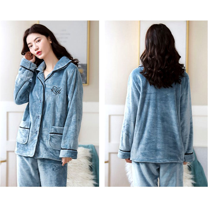 ・トップスはフロントボタン付きのベーシックデザイン。襟元が程よく開いて心地よい睡眠をサポート。左胸元にポケット付き。