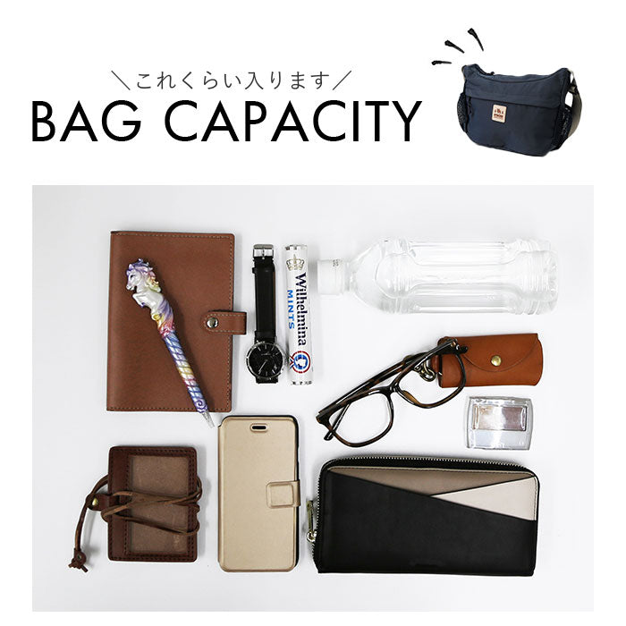 ・ショルダーベルトの長さを調節して、肩掛けも斜め掛けも自在。両手が空くので、レジャーや旅行などでも重宝。