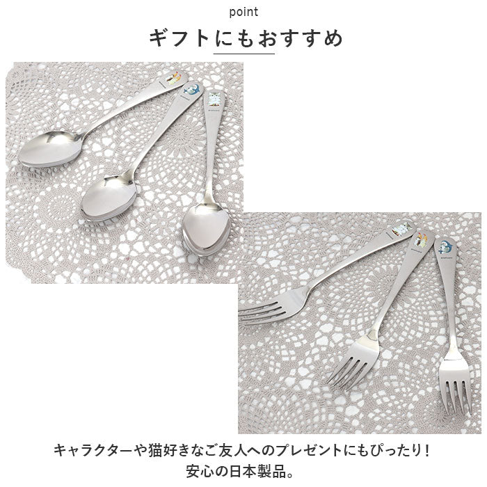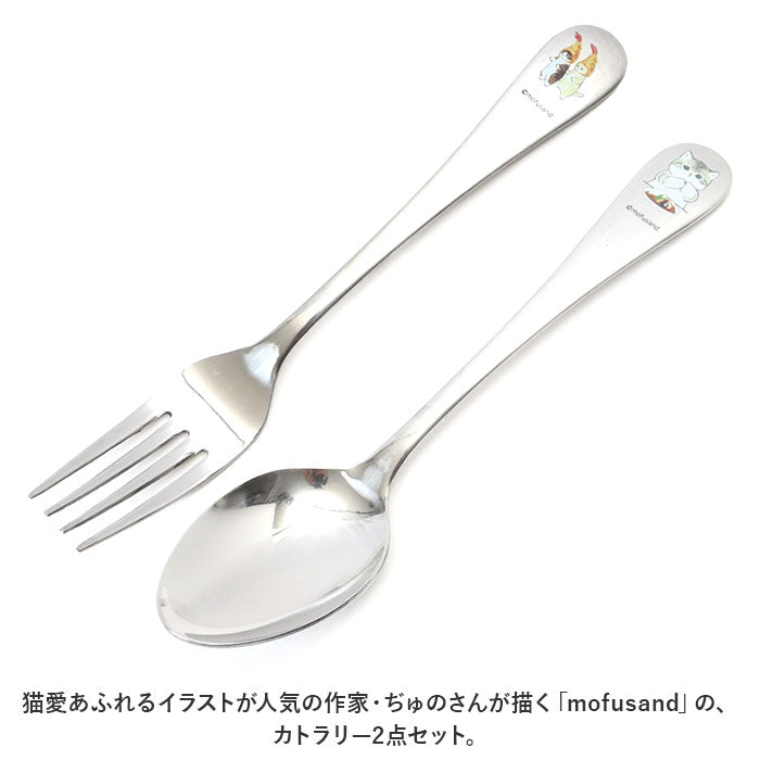 ・猫愛あふれるイラストが人気の作家・ぢゅのさんが描く「mofusand」の、カトラリー2点セット。