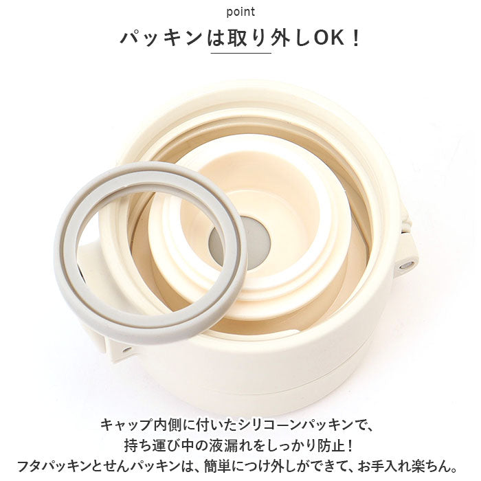 ・キャップ内側に付いたシリコーンパッキンで、持ち運び中の液漏れをしっかり防止!フタパッキンとせんパッキンは、簡単につけ外しができて、お手入れ楽ちん。