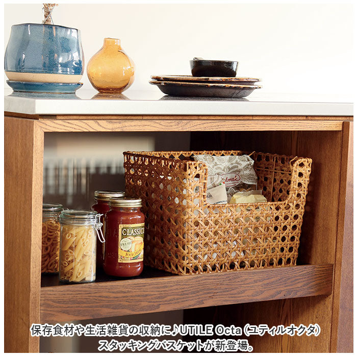 ユティルオクタ バスケット カゴ 通販 UTILE Octa スタッキングバスケット かご 大きい 籠 キッチンバスケット キッチン収納 ナチュラル キッチンストッカー 持ち手 台所 収納 小物収納