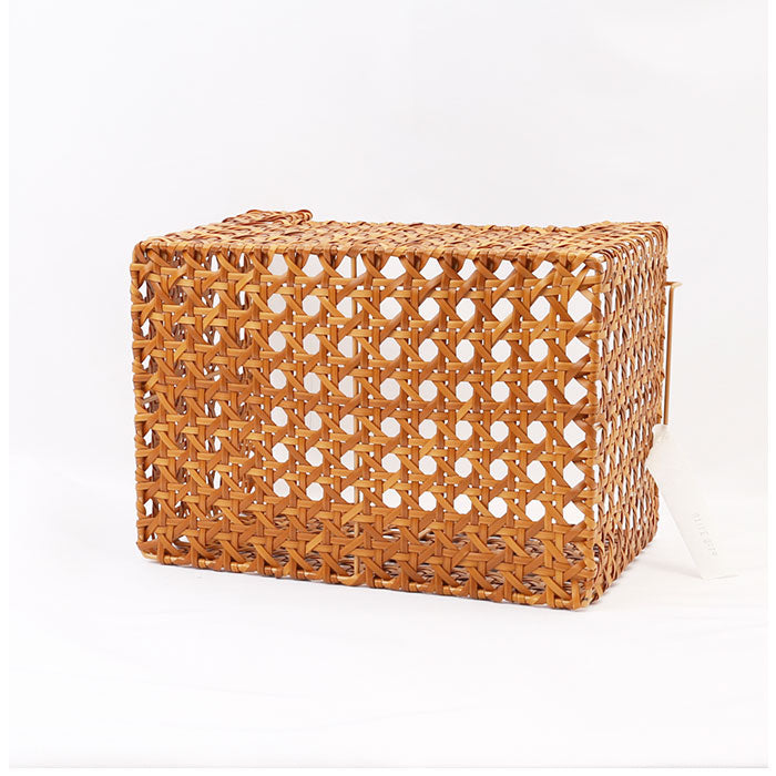 ・ポリプロピレンとポリエチレンチューブを使って、手編み(八つ目編み)したバスケット。ナチュラルな風合いで生活感が出にくく、見せる収納にも最適。
