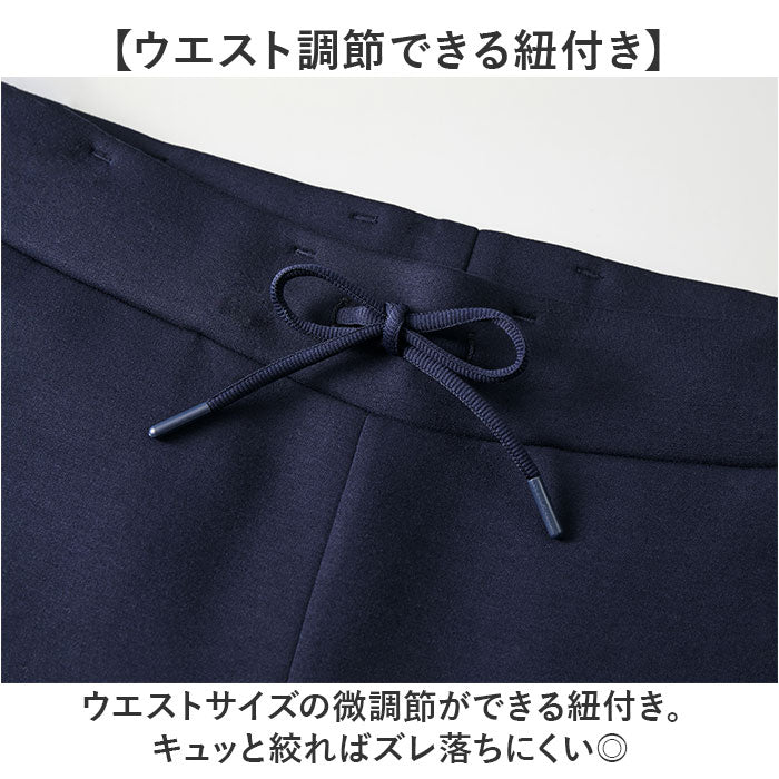 ・ウエストサイズの微調節ができる紐付き。キュッと絞ればズレ落ちにくい◎