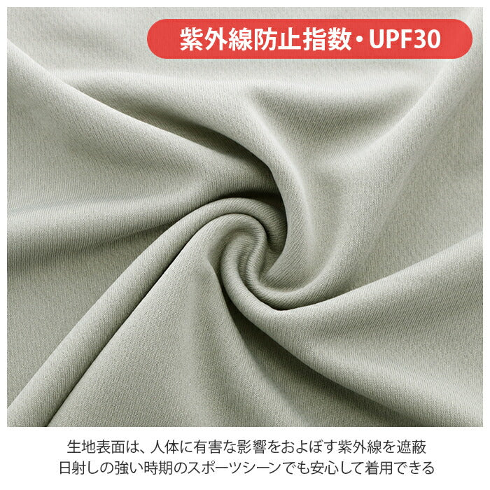 ・生地表面は、人体に有害な影響をおよぼす紫外線を遮蔽。日射しの強い時期のスポーツシーンでも安心して着用できる。紫外線防止指数・UPF30。(※)