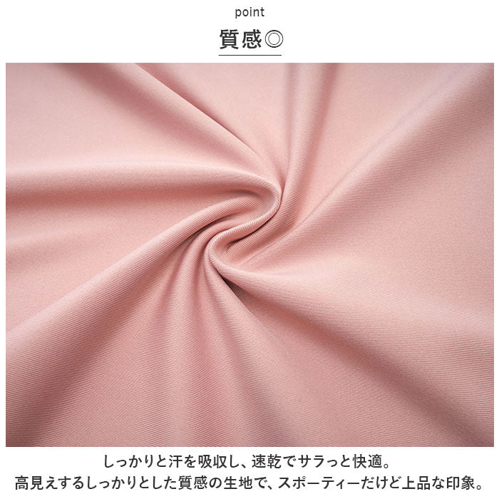 ・しっかりと汗を吸収し、速乾でサラっと快適。高見えするしっかりとした質感の生地で、スポーティーだけど上品な印象。