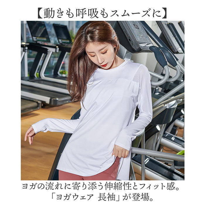 ヨガウェア トップス 長袖 通販 レディース ゆったり ロング ヨガ ピラティス ロング丈 スポーツ ジム 運動 体型カバー おしゃれ かわいい スポーツウェア フィットネス トレーニング