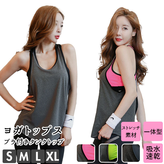 ヨガトップス ブラ付きタンクトップ 一体型 bx239